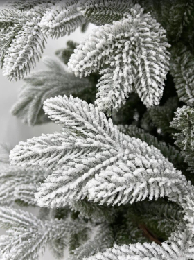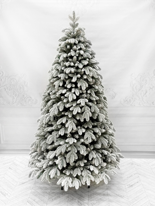 Эта искусственная ель выполнена в максимально реалистичном стиле и украшена эффектным плотным снежным покрытием, создающим ощущение свежего зимнего утра. Ровно распределённые ветви формируют идеальный конус, а густая хвоя с мягким белым напылением выглядит как настоящая.