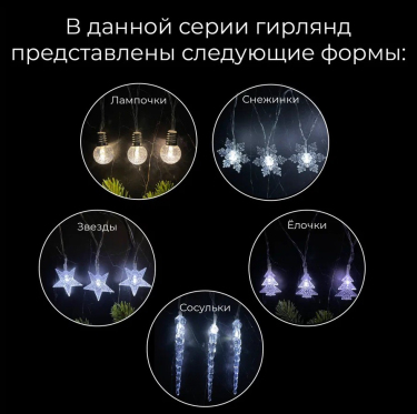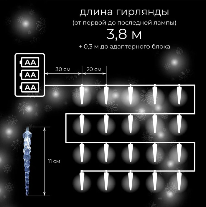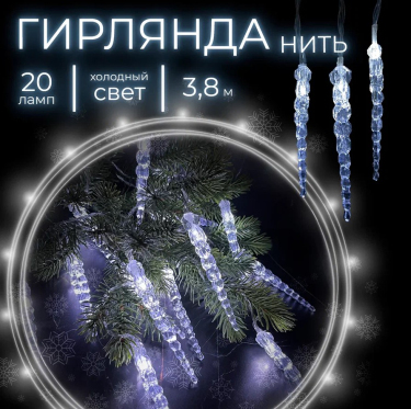 Гирлянда LED Сосульки на батарейках, холодный свет, 20 ламп, 8 функций