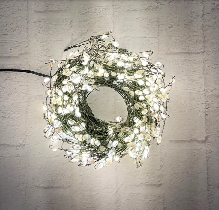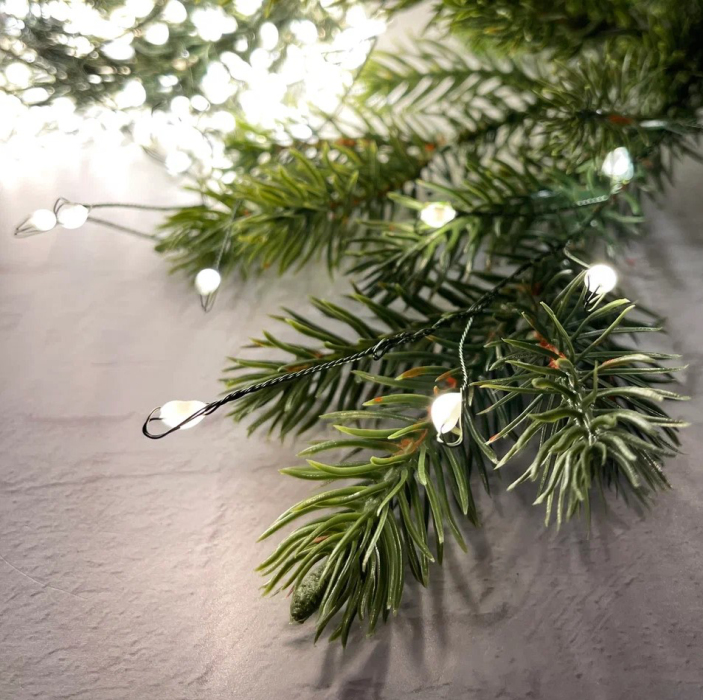 Гирлянда Snake Light Капли макро на зеленом проводе теплый белый свет 600 ламп, 8 функций, 1500 см