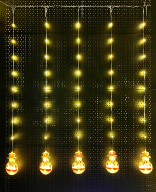 Гирлянда-занавес снеговик теплый белый свет 84 лампы, 8 функций 100*100 см