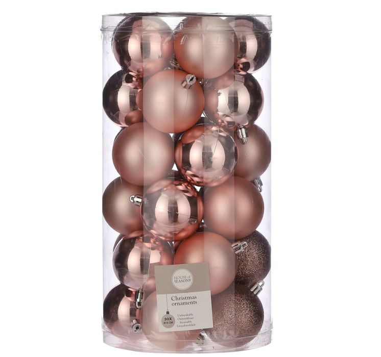 Набор шаров Ø 6 см розовый жемчуг 30 шт. в прозрачной упаковке